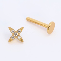 Titanium Earrings 23G Gold Nose Piercing Jewelry Threadless Titanium Flatback Earrings CZ Jewellery for Woman